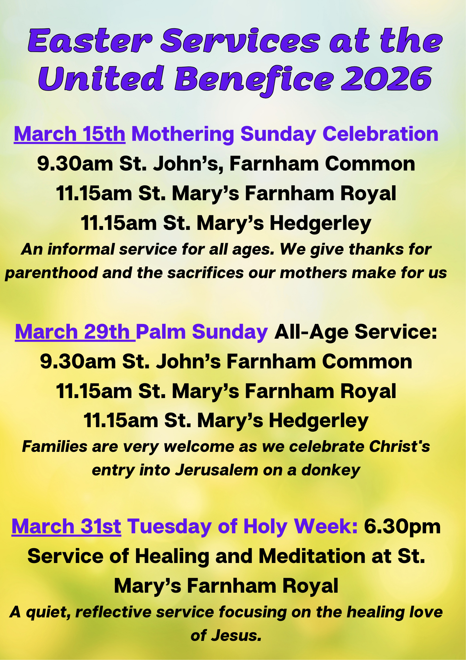 The website for the United Benefice of Farnham Royal and Hedgerley which are three Anglican churches based in Farnham Royal, Farnham Common and Hedgerley in Buckinghamshire, UK.